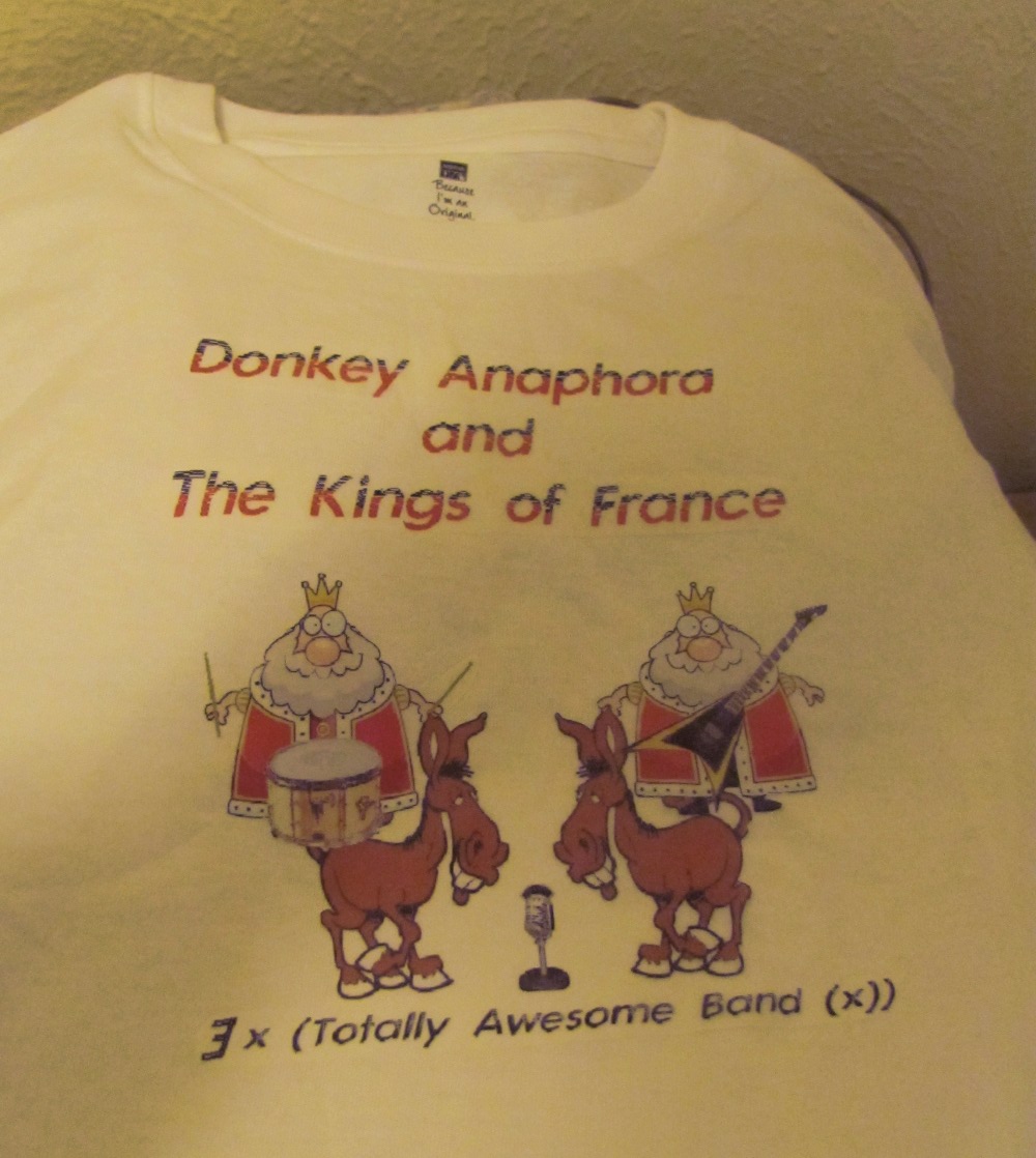 A t-shirt for a (as yet fictitious?) band. Started as an in-class joke which arose from the juxtaposition of two topics: